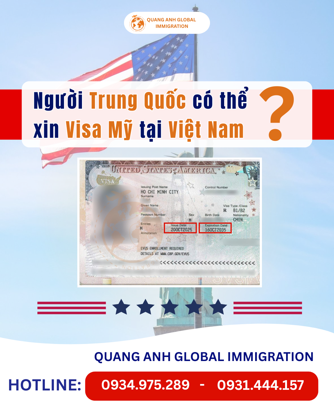 Visa Mỹ cho khách hàng Trung Quốc tại Việt Nam - Quang Anh Global Immigration