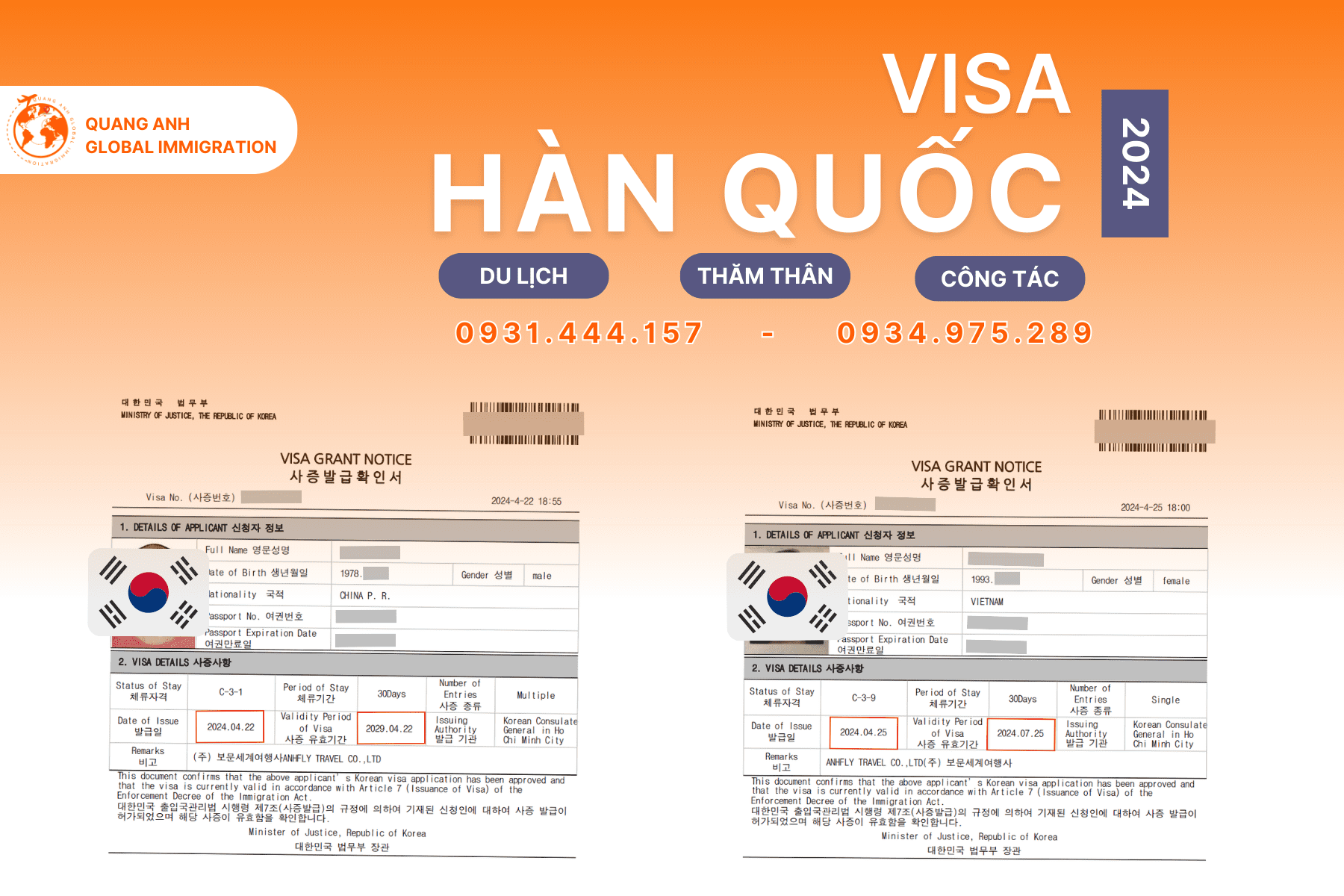 Dịch vụ làm Visa Hàn Quốc của Quang Anh Global Immigration