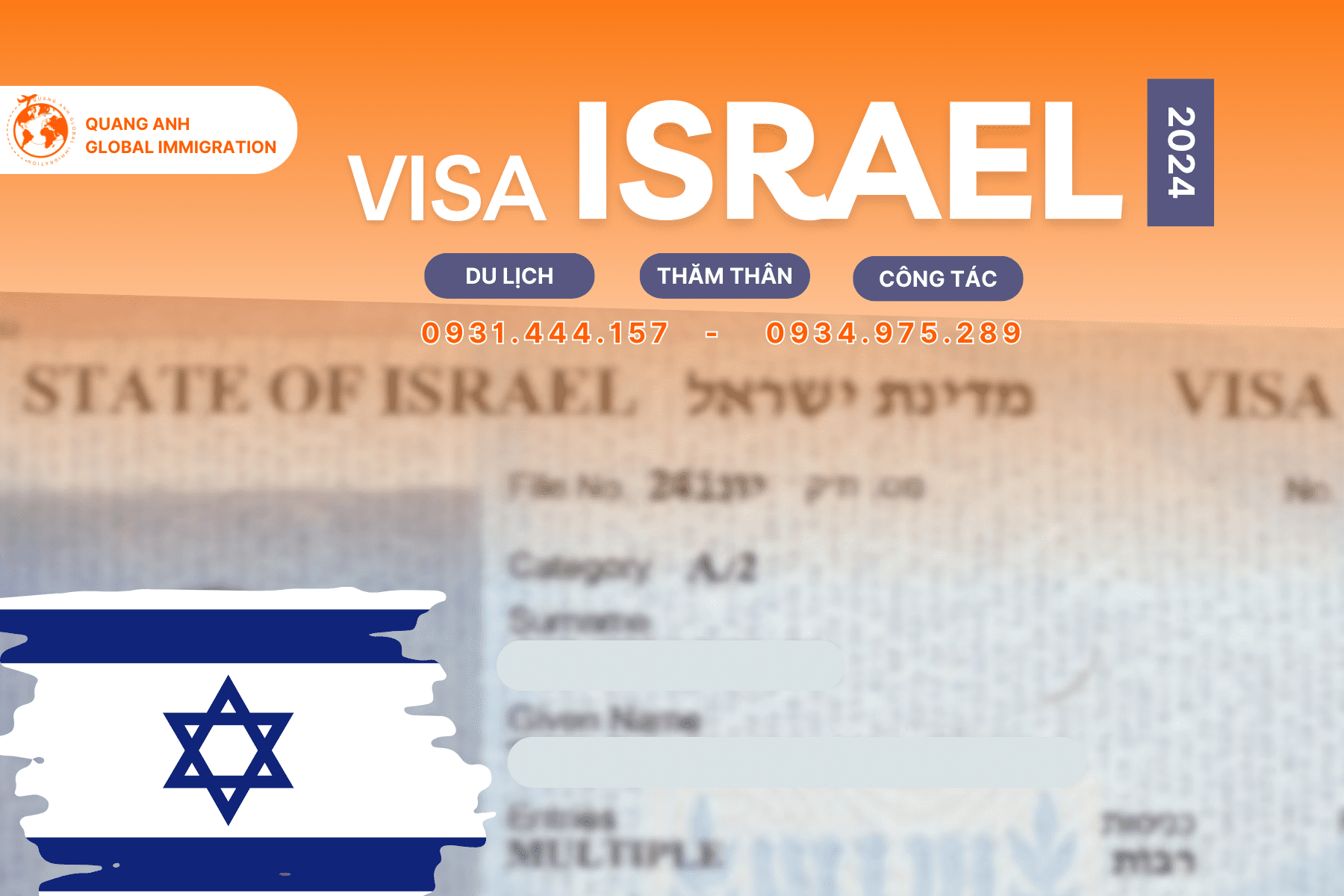 - Dịch vụ làm Visa thăm thân Israel cho người Việt Nam và cả người nước ngoài đang ở Việt Nam.